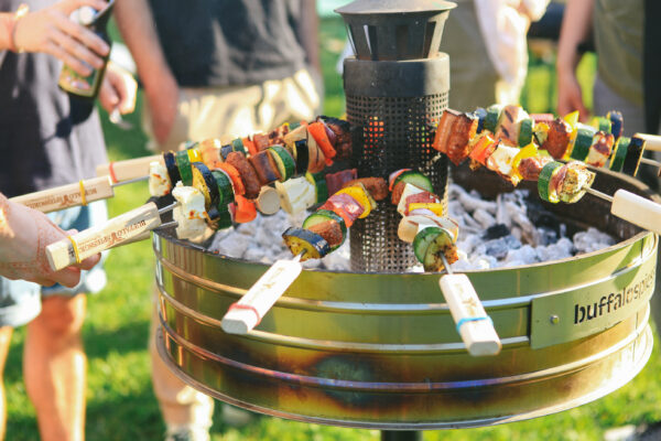 Der Spiessli-Grill ist die perfekte Lösung für geselliges Grillieren. Jede:r kreiert den eigenen Partyspiess – grilliert wird individuell über der Holzkohle-Konstruktion «made in Schaffhausen».